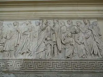 - ↑ Se raser la barbe était un acte symbolique romain, généralement effectué lors d'une cérémonie à l'âge de vingt et un ans.