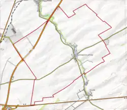 - ↑ Les ruisseaux intermittents sont représentés en traits pointillés.