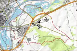 - ↑ Les ruisseaux intermittents sont représentés en traits pointillés.
