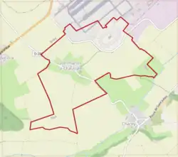 L'occupation des sols de la commune, telle qu'elle ressort de la base de données européenne d’occupation biophysique des sols Corine Land Cover (CLC), est marquée par l'importance des territoires agricoles (81,4 % en 2018), une proportion sensiblement équivalente à celle de 1990 (81,5 %). La répartition détaillée en 2018 est la suivante : terres arables (66,2 %), zones industrielles ou commerciales et réseaux de communication (18,6 %), prairies (15,2 %)[14]. L'évolution de l’occupation des sols de la commune et de ses infrastructures peut être observée sur les différentes représentations cartographiques du territoire : la carte de Cassini (XVIIIe siècle), la carte d'état-major (1820-1866) et les cartes ou photos aériennes de l'IGN pour la période actuelle (1950 à aujourd'hui)[Carte 3].