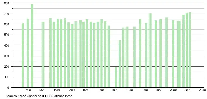 - ↑ Fiches Insee - Populations de référence de la commune pour les années 2006, 2007, 2008, 2009, 2010, 2011, 2012, 2013, 2014, 2015, 2016, 2017, 2018, 2019, 2020, 2021 et 2022.