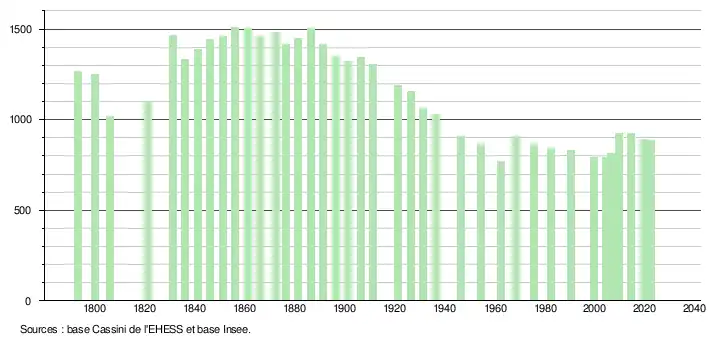 - ↑ Fiches Insee - Populations de référence de la commune pour les années 2006, 2007, 2008, 2009, 2010, 2011, 2012, 2013, 2014, 2015, 2016, 2017, 2018, 2019, 2020, 2021 et 2022.