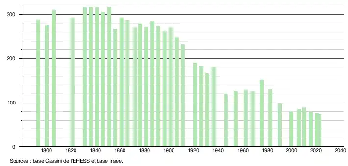 (Sources : Ldh/EHESS/Cassini jusqu'en 1999[1] puis Insee à partir de 2006[19].)
