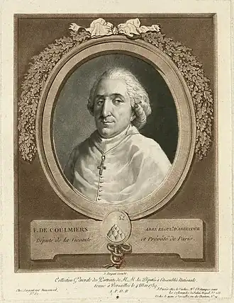 Le 17 mai 1763, le mariage du marquis et de Renée-Pélagie, fille aînée de Cordier de Montreuil, président honoraire[N 6] à la cour des Aides de Paris, de petite noblesse de robe, mais dont la fortune dépasse largement celle des Sade, est célébré à Paris en l'église Saint-Roch. Les conditions financières ont été âprement négociées par le comte de Sade et la présidente de Montreuil[18], femme énergique et autoritaire. Il n'existe pas de portrait de Renée-Pélagie qui manque peut-être d'agréments. Le comte de Sade, la voyant pour la première fois, la décrit ainsi à sa sœur :