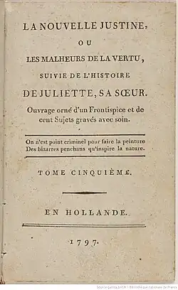 - ↑ Gilbert Lely, Sade, Gallimard, 1967, p. 187.