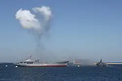 - ↑ Voytenko, « Ukrainian Navy auxiliary ship DONBASS fire, Odessa », FleetMon.com, (consulté le )