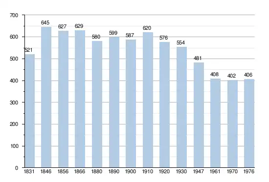 - Sources:INS, Rem:1831 jusqu'en 1970=recensements, 1976= nombre d'habitants au 31 décembre