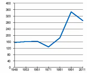 - 1 2 (sq) « Évolution de la population 1948-2011 », sur pop-stat.mashke.org (consulté le ).