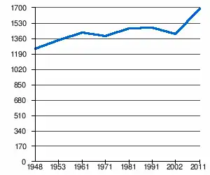 - 1 2 (sr + en) « Livre 20 : Vue d'ensemble comparative de la population en 1948, 1953, 1961, 1971, 1981, 1991, 2002 et 2011, données par localités) » [PDF], pages du recensement de 2011 en Serbie - Institut de statistique de la république de Serbie, (consulté le )