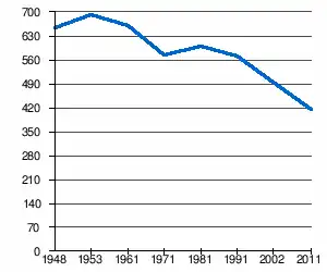 | 656 | 693 | 661 | 578 | 601 | 571 | 494[2] | 415[1] |