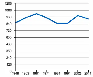 - 1 2 (sr + en) « Livre 20 : Vue d'ensemble comparative de la population en 1948, 1953, 1961, 1971, 1981, 1991, 2002 et 2011, données par localités) » [PDF], pages du recensement de 2011 en Serbie - Institut de statistique de la république de Serbie, (consulté le )