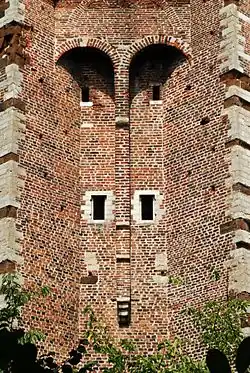 La cheminée qui se dresse à côté du donjon est un vestige de la brasserie « De Toren » qui fut active de 1870 à 1939[1].