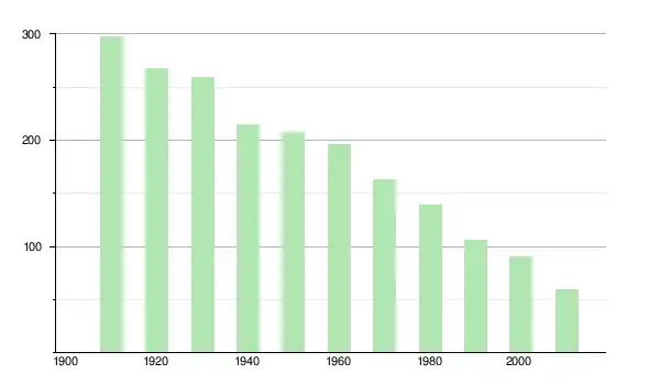 | 1930 | 259 | ▼ −3 % | |