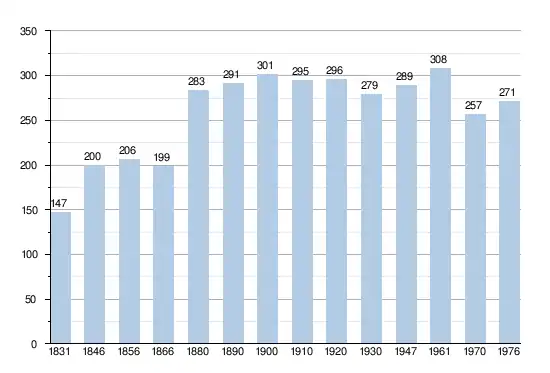 - Sources : INS, Rem. : 1831 jusqu'en 1970 = recensements, 1976 = nombre d'habitants au 31 décembre.