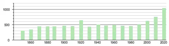 La commune compte 1 103 habitants au 31 décembre 2023 pour une densité de population de 88 hab/km2[1]. Sur la période 2010-2023, sa population a augmenté de 50,3 % (canton : 17,0 % ; Suisse : 9,4 %)[11].