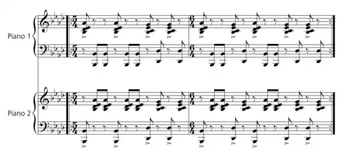 Dans sa version pour ensemble concertant, la pièce est composée pour deux sextuors constitués chacun d'une flûte, une clarinette, un vibraphone, un piano, un violon et un violoncelle.