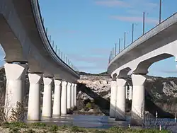Les tabliers des viaducs sont supportés par une poutre continue de hauteur variable. Cette variabilité de la hauteur des poutres est due à l'adoption d'un système de construction à voussoirs préfabriqués précontraints. Ce type de voussoirs est normalement employé dans les ouvrages routiers.