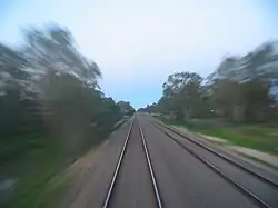 Arrivée d'un DART en station de Lansdowne Road à Dublin. Avec une double voie, chaque sens de circulation possède ses propres quais.