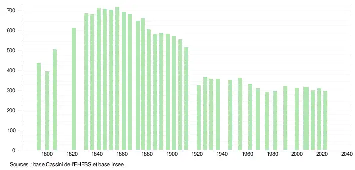 - ↑ Population municipale de référence en vigueur au 1er janvier 2025, millésimée 2022, définie dans les limites territoriales en vigueur au 1er janvier 2024, date de référence statistique : 1er janvier 2022.