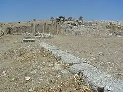 Le forum de la cité avec ses 924 m2[49] est à la fois petit et inégalement préservé, la forteresse byzantine ayant endommagé une grande partie des bâtiments le constituant[50]. Le Capitole intégré sur l'aire entourée de portiques écrase en quelque sorte les autres éléments de par sa présence imposante, et au premier chef tout autre élément pouvant être utilisé par les institutions locales. La présence de la place de la Rose des vents — du nom de l'élément de décoration y figurant — ne parvient pas à donner de l'espace à cette place publique et ne sert en quelque sorte que comme esplanade au temple de Mercure la bordant au nord[50]. Sur l'un des côtés de la place doit se situer la curie de la cité ainsi qu'une tribune aux harangues[33].