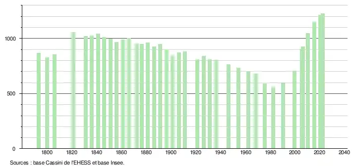 - ↑ Fiches Insee - Populations de référence de la commune pour les années 2006, 2007, 2008, 2009, 2010, 2011, 2012, 2013, 2014, 2015, 2016, 2017, 2018, 2019, 2020, 2021 et 2022.