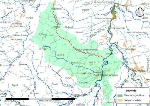 | Sources : SANDRE:« Fiche cours d'eau (K3387000) », Géoportail | |