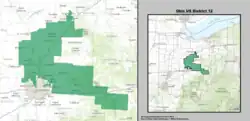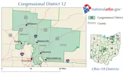 Le 12e district congressionnel de l'Ohio est un district situé dans le centre de l'Ohio, couvrant le comté d'Athens, le comté de Coshocton, le comté de Fairfield, le comté de Guernsey, le comté de Knox, le comté de Licking, le comté de Morgan, le comté de Muskingum et le comté de Perry ainsi que des parties de Delaware, Holmes et Tuscarawas[1]. Le district comprend les communautés à l'est de Columbus, notamment Zanesville, Cambridge et Mount Vernon. Il est actuellement représenté par le Républicain Troy Balderson. Il a pris ses fonctions à la suite d'une élection spéciale tenue le 7 août 2018 pour remplacer le Représentant Pat Tiberi, qui avait démissionné le 15 janvier 2018. Balderson a ensuite été réélu aux élections générales de 2018 deux mois plus tard[2],[3].