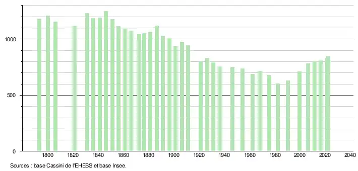 - ↑ Fiches Insee - Populations de référence de la commune pour les années 2006, 2007, 2008, 2009, 2010, 2011, 2012, 2013, 2014, 2015, 2016, 2017, 2018, 2019, 2020, 2021 et 2022.