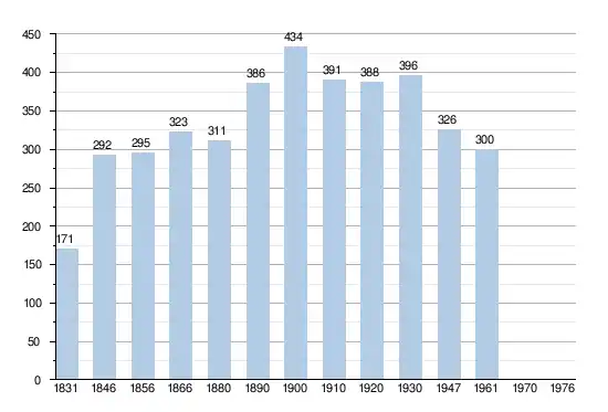 - Source: DGS, 1831 à 1970=recensements population, 1976= habitants au 31 décembre