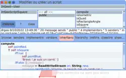 Dans toute figure géométrique, il est possible d'y embarquer des scripts codés par l'utilisateur. Ce sont les scripts Smalltalk qui se manipulent alors comme les autres objets d'une figure.