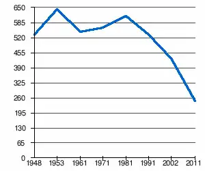 - 1 2 (sr + en) « Livre 20 : Vue d'ensemble comparative de la population en 1948, 1953, 1961, 1971, 1981, 1991, 2002 et 2011, données par localités) » [PDF], pages du recensement de 2011 en Serbie - Institut de statistique de la république de Serbie, (consulté le )