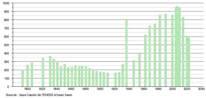 - ↑ Population municipale de référence en vigueur au 1er janvier 2025, millésimée 2022, définie dans les limites territoriales en vigueur au 1er janvier 2024, date de référence statistique : 1er janvier 2022.