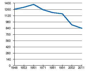 | 1 261 | 1 317 | 1 372 | 1 253 | 1 196 | 1 166 | 910[2] | 834[1] |