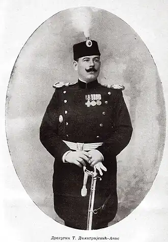 Le capitaine Dimitrijević et un groupe de 120 jeunes officiers préparèrent l'assassinat du roi de Serbie Alexandre Ier de Serbie. Le , le groupe prit d'assaut le palais royal du royaume de Serbie et tua à la fois Alexandre Ier de Serbie et sa femme Draga Mašin. Pendant l'attaque, Dimitrijević fut sévèrement blessé mais il se remit de ses blessures, les trois balles reçues lors de l'assaut ne lui furent jamais retirées du corps.