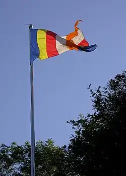 Le drapeau bouddhique fut conçu en 1884-85 par le Colombo Comitee[1] sur suggestion de Henry Steel Olcott et adopté par la Fédération mondiale du bouddhisme en 1950. Depuis, il est largement utilisé dans tous les pays bouddhistes et flotte sur les temples et à l'occasion des manifestations religieuses[2].