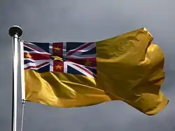 Le drapeau de Niue, île du Pacifique associée à la Nouvelle-Zélande, est formé de la même façon que les pavillons britanniques comme le Red Ensign. Le champ du drapeau est jaune et le canton supérieur à la hampe porte le dessin du drapeau du Royaume-Uni chargé, sur la croix principale, de cinq étoiles jaunes à cinq branches. L'étoile centrale est sur un disque bleu autour duquel les quatre autres, plus petites, forment un losange.