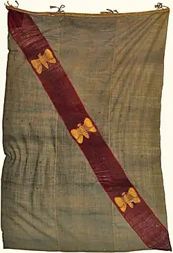 | Éléments | Blanc, divisé en diagonale par une bande rouge commençant au côté supérieur du mât et sur laquelle sont posées trois abeilles d'or. |