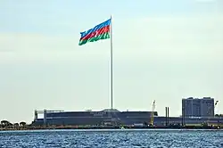 Le , le président azerbaïdjanais publie un décret sur la création de la place du drapeau national, à Bakou. Celle-ci est ornée d'une hampe de 220 tonnes et d'une hauteur de 162 mètres. Le drapeau hissé sur ce mat possède une superficie de 2 450 m2, mesure 35 mètres de large et de 70 mètres de long et pèse 350 kg[5]. Dans le même temps, un musée consacré au drapeau national est construit. Le , le drapeau est officiellement hissé lors de l'ouverture du musée. Cette hampe de drapeau est alors la plus grande du monde sans support, jusqu'à ce qu'elle soit dépassée par celle du drapeau de Douchanbé de 165 mètres au Tadjikistan en mai 2011, elle-même devancée en 2014 par les 171 mètres de la hampe de drapeau de Djeddah en Arabie saoudite[6].