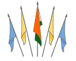 Le pavillon militaire, reprenant le White Ensign britannique.Le drapeau de l'Inde est le drapeau national de la république de l'Inde. Il se compose de trois bandes horizontales de largeur égale : safran au-dessus, blanc au milieu et vert pour celle du bas. Au centre de la bande blanche se trouve le chakra d'Ashoka, une roue bleue comportant vingt-quatre rayons.