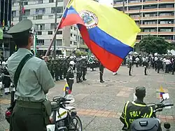 Drapeau de la Colombie lors d'une cérémonie de la police dans la ville d'Ibague.