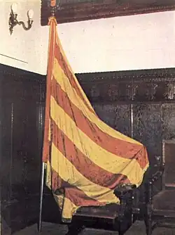 Un exemple de l'identification entre le drapeau de la ville et celui du roi est un document de 1321 dans lequel les autorités municipales ordonnaient que « tot hom a cavall e a peu, sia aparellat ab ses armes de seguir la senyera del senyor rei e de la ciutat » (« tout homme à cheval et à pied, soit apprêté avec ses armes pour suivre le drapeau du seigneur roi et de la ville ») et « que la senyera del senyor rey e de la ciutat fos treyta e posada en la plaça d'en G. Escrivà » (« que le drapeau du seigneur roi et de la ville fût sorti et placé sur la place de de sieur G. Escrivà »). La même identification apparaît dans la Chronique de Pierre le Cérémonieux, lorsque le roi rapporte que les troupes de l'Unió (en) (1347-1348) qui s'étaient rebellées contre lui « tenien llur bandera reial contra la nostra » (« avaient leur drapeau royal contre le nôtre »)[15].