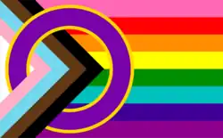 Une autre technique consiste à insérer un autre drapeau à l'intérieur du cercle : par exemple, le drapeau de la fierté des personnes transgenres intersexes place le drapeau transgenre au centre. En 2021, le drapeau intersexe a été intégré dans la version Progress Pride Flag du drapeau arc-en-ciel de la fierté par Valentino Vecchietti d'Intersex Equality Rights UK[10],[11].