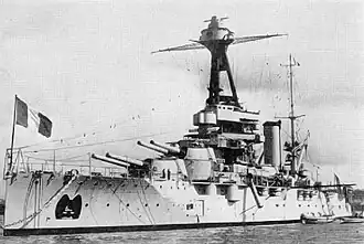 Comparée aux autres grandes puissances navales, la France fut lente à adopter le concept de dreadnought préférant terminer la classe Danton de pré-dreadnoughts. La France fut seulement la onzième nation à entrer dans la course avec la classe Courbet en septembre 1910[91]. Dans les estimations navales de 1911, Paul Bénazet déclara qu'entre 1896 et 1911, la France était passée de la deuxième à la quatrième place du classement des plus grandes flottes de guerre du monde. Cependant, l'alliance avec la Grande-Bretagne fit que ces forces réduites étaient plus que suffisantes pour répondre aux besoins français[50].