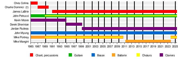- Mike Portnoy : batterie, percussions, chœurs (1985-2010, depuis 2023)