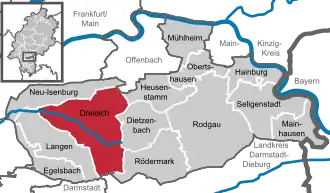 Situation de Dreieich dans l'arrondissement d'Offenbach.