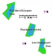 Les lacs sont: Lerchenauer See (8 ha), Fasaneriesee (14 ha) et Feldmochinger See (15 ha).