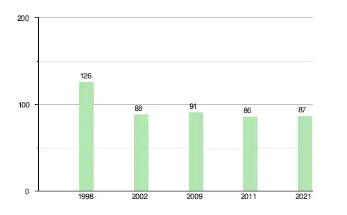 En 2021, le village de Drewno comptait 87 habitants, en diminution de −30,95 % par rapport à 1998[6]. En 2021, 74,7 % des habitants du village de Drewno sont en âge de travailler (entre 18 et 64 ans pour les hommes et 18 et 59 ans pour les femmes). 10,3 % des habitants ont moins de 18 ans et 14,9 % ont l'âge légal de la retraite. Les personnes en âge de travailler représentent 59,5 % de la population de la voïvodie de Couïavie-Poméranie et 59,5 % de la population de Pologne. Ainsi, le taux de dépendance démographique du village de Drewno est inférieur à celui de la voïvodie de Couïavie-Poméranie et inférieur à celui de la Pologne[7].