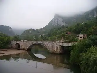 Le pont Mehmed Pacha Sokolović, construit sur la Drina à Višegrad à la fin du XVIe siècle, a été inscrit sur la liste du Patrimoine mondial de l'humanité de l'UNESCO en 2007[23]. Certains espaces naturels sont également protégés. Le parc national de Sutjeska, situé à la frontière entre la Bosnie-Herzégovine et le Monténégro est centré autour de la rivière Sutjeska, un affluent gauche de la Drina ; il s'étend sur une superficie d'environ 172 km2 ; classé dans la catégorie II de l'Union internationale pour la conservation de la nature (UICN), celle des « aires protégées gérées principalement dans le but de protéger les écosystèmes et à des fins récréatives », il a été créé en 1965[31]. Le Parc national de Tara, en Serbie, a été créé le [32] ; il s'étend sur les monts Tara et Zvijezda, dans la large boucle que forme la Drina dans la région du Haut Podrinje ; classé dans la catégorie II de l'UICN, il s'étend sur une superficie d'environ 192 km2[33], à une altitude comprise entre 1 000 et 1 500 m au-dessus du niveau de la mer ; l'administration du parc est située dans la ville de Bajina Bašta[18]. Depuis 2002, le parc et le canyon de la Drina sont candidats à une reconnaissance de leur importance internationale par l'UNESCO[34].