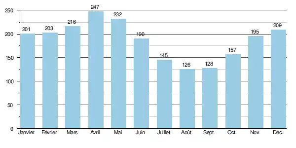 | Mois | Janv | Fév | Mars | Avr | Mai | Juin | Juil | Août | Sept | Oct | Nov | Déc |