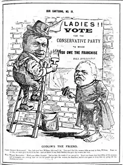 En 1891, Walter Carncross propose un amendement visant à faire échouer un nouveau projet de loi au Conseil législatif. Son amendement doit permettre aux femmes de devenir éligibles à la Chambre des représentants et s'assure donc du fait que la Chambre haute, conservatrice, rejette le projet de loi. Cette tactique rend furieuse la suffragette Catherine Fulton, qui organise une manifestation lors des élections de 1893[14]. Un projet de loi électorale de 1892, présenté par John Ballance, prévoit l'émancipation de toutes les femmes, mais une controverse s'installe sur l'un de ses amendements peu pratique concernant le vote par correspondance et cela provoque son abandon.